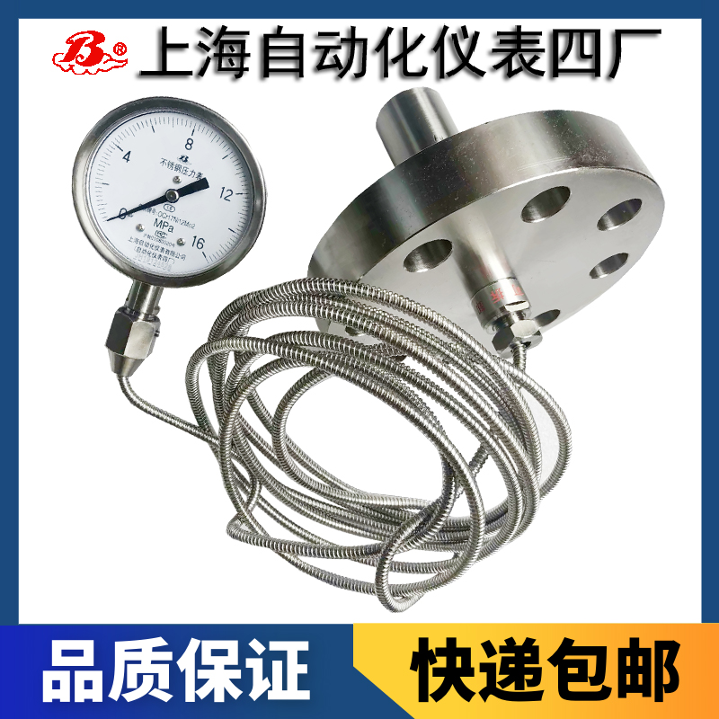 4.充液隔膜式壓力表的使用性能,從其工作原理可知:其耐介質(zhì)腐蝕性均取決于膜片及法蘭材料;其余性能取決于與之相配的通用型儀表。故用于有強(qiáng)烈機(jī)械振動的場合,要求配用耐抗振壓力儀表。